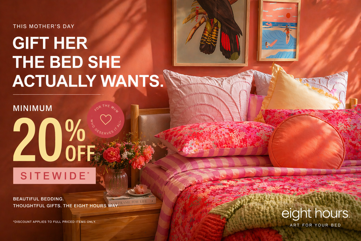 A stunning quilt cover set, the fabric is beautifully crafted and has a silk finish which works perfectly for anyone that gets that little bit hot during the night. Finally the colours and patterns are what sold me in the end, i love the bright and fun design. Bedtime can’t come quick enough! Thank you Eight Hours.